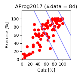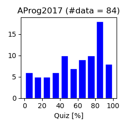 (前半分の総合評点) = 30x(Quizの得点率) + 20x(演習課題の得点率) + (おまけ課題分)