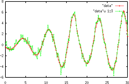 gnuplot> plot "data", "data" using 1:3