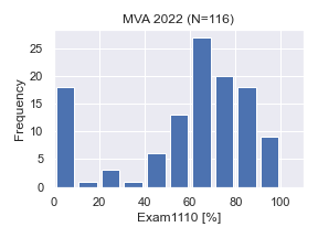 「Quiz」,「実習課題(Exercise)」,「小テスト(Exam1110)」「試験(Exam0126)」,の得点率[%]の分布.