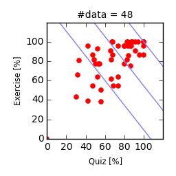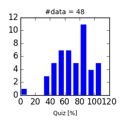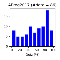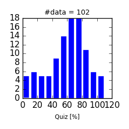 (前半分の総合評点) = 30x(Quizの得点率) + 20x(演習課題の得点率) + (おまけ課題分)