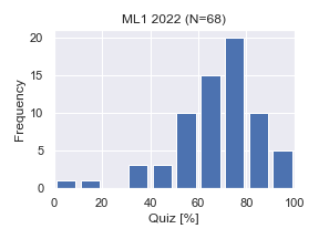 | 年度 | 履修登録 | 履修辞退等 | 小テスト受験者数 | 合格者数 | 合格/登録 | 合格/受験 |