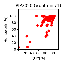 「小テスト」と「宿題」の相関