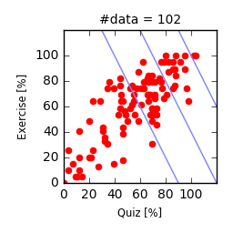 - 横軸: Quizの得点率,縦軸: 演習課題の得点率