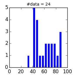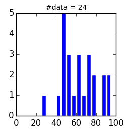 定期試験受験者の点数分布. 演習も定期試験もおまけ要素があるので,到達可能な最高点は111点(2017年度の場合)でした.100点以上の点数は次の通り: 101