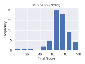 旧カリ「パターン情報処理」は「機械学習I」および「機械学習II」と合併開講のセメスター科目ですので,「機械学習I/II」相当の評点の合計におまけ点(おまけ課題等の分)を加算したものを最終評点としました. 「機械学習I/II」相当の評点(それぞれ50点満点)は以下の評価項目から算出しています.