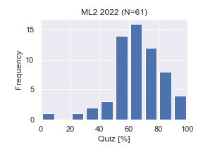 | 年度 | 履修登録 | 履修辞退等 | 小テスト受験者数 | 合格者数 | 合格/登録 | 合格/受験 |